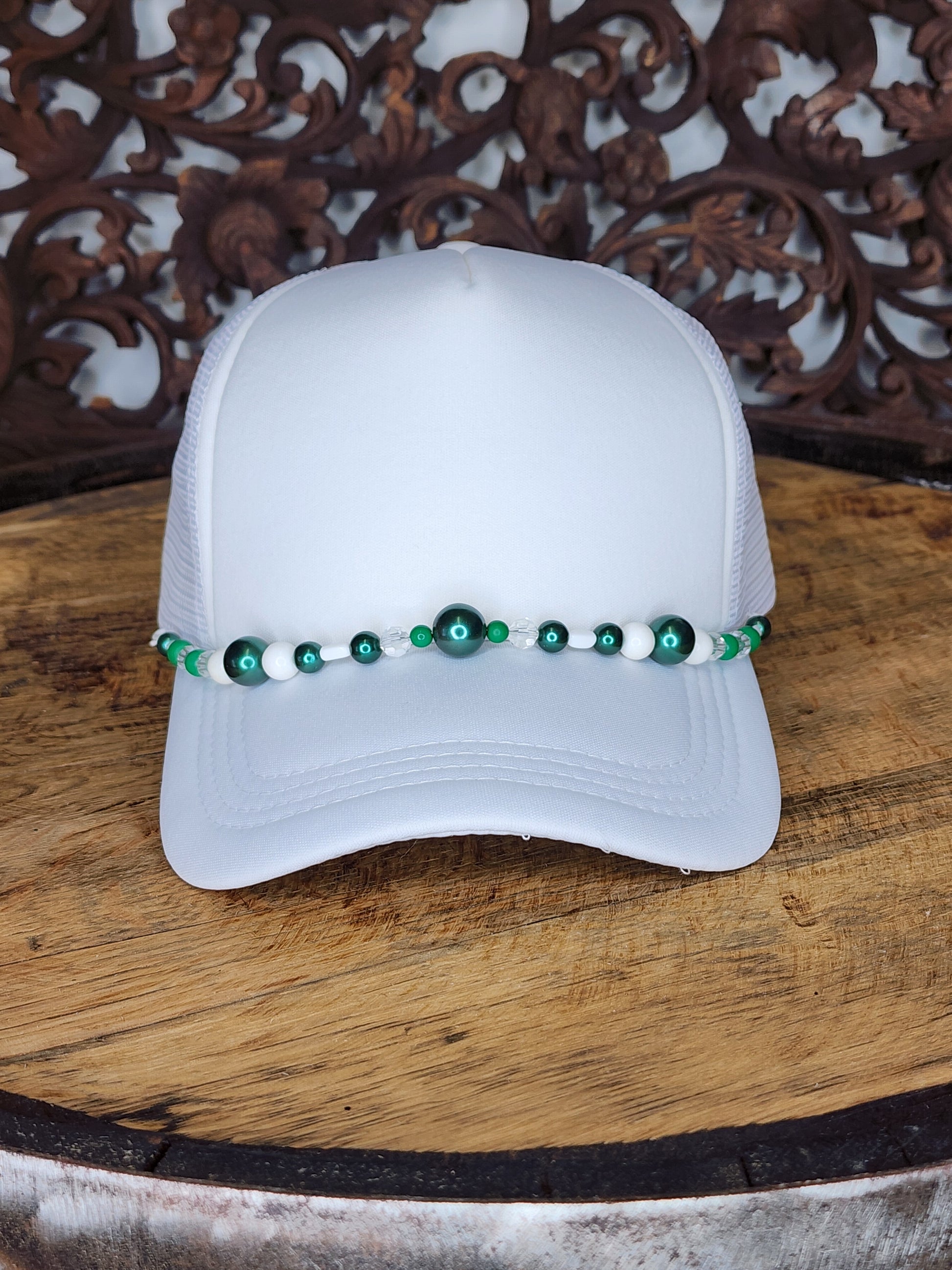 Trucker Hat with Hat Chain Green/White